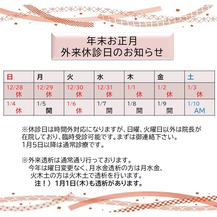 内科・腎臓内科・人工透析内科・泌尿器科・美容皮膚科